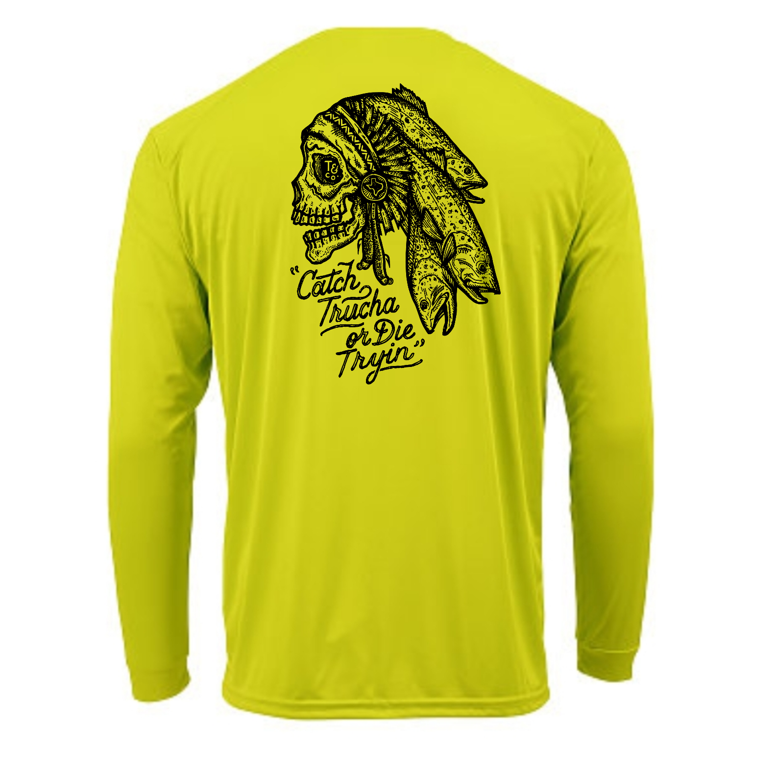 "Catcha Trucha or Die Tryin" is a collective design featured in this high quality sticker as well as T-shirts and an awesome sticker. Your next favorite tee is a just a click away.